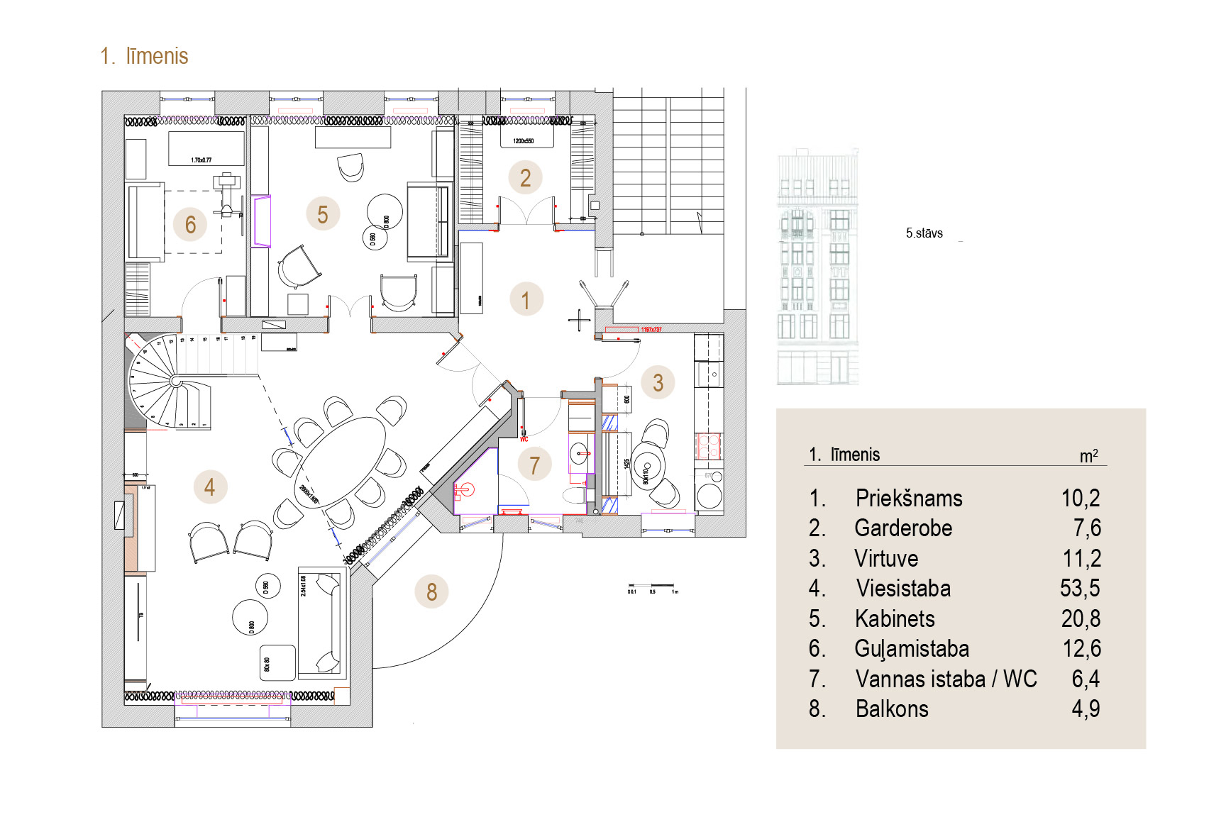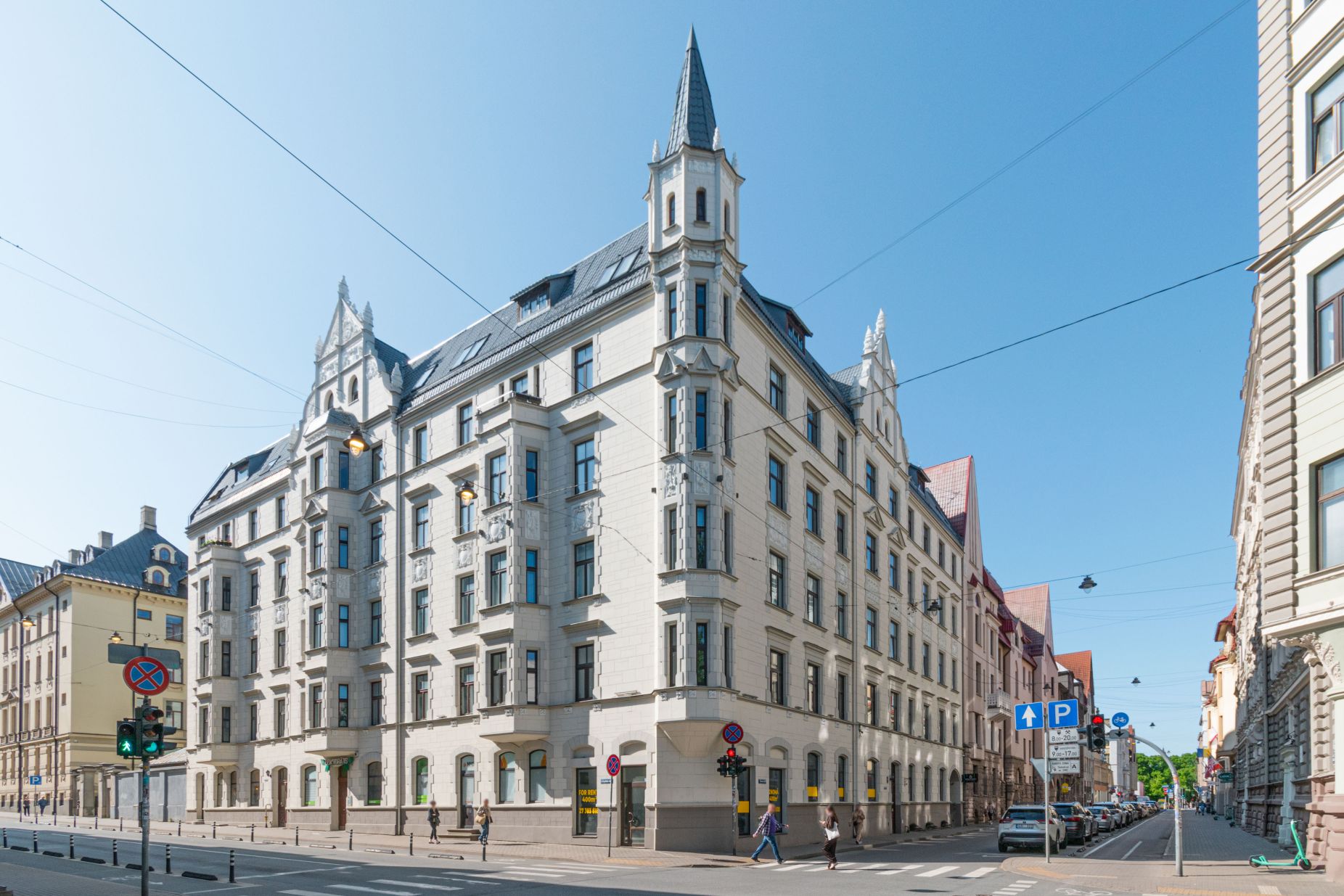 Квартира расположена в историческом здании в центре Риги, на перекрестке улиц Лачплеша и Сколас, на стороне двора. Расположение квартиры обеспечивает удобный доступ к различным культурным, развлекательным и досуговым возможностям. Район идеально подходит для тех, кто ценит динамику центра города и легкий доступ ко всем необходимым удобствам.