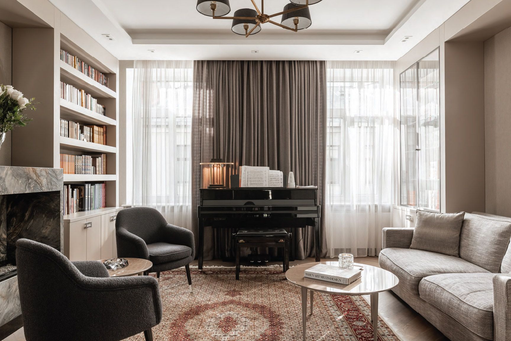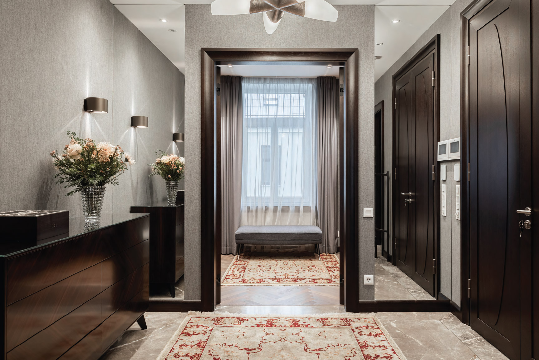 В квартире четыре спальни — три из них с собственными ванными комнатами, а также уютный кабинет с библиотекой и камином — место, где можно насладиться тишиной и укрыться от повседневной суеты.