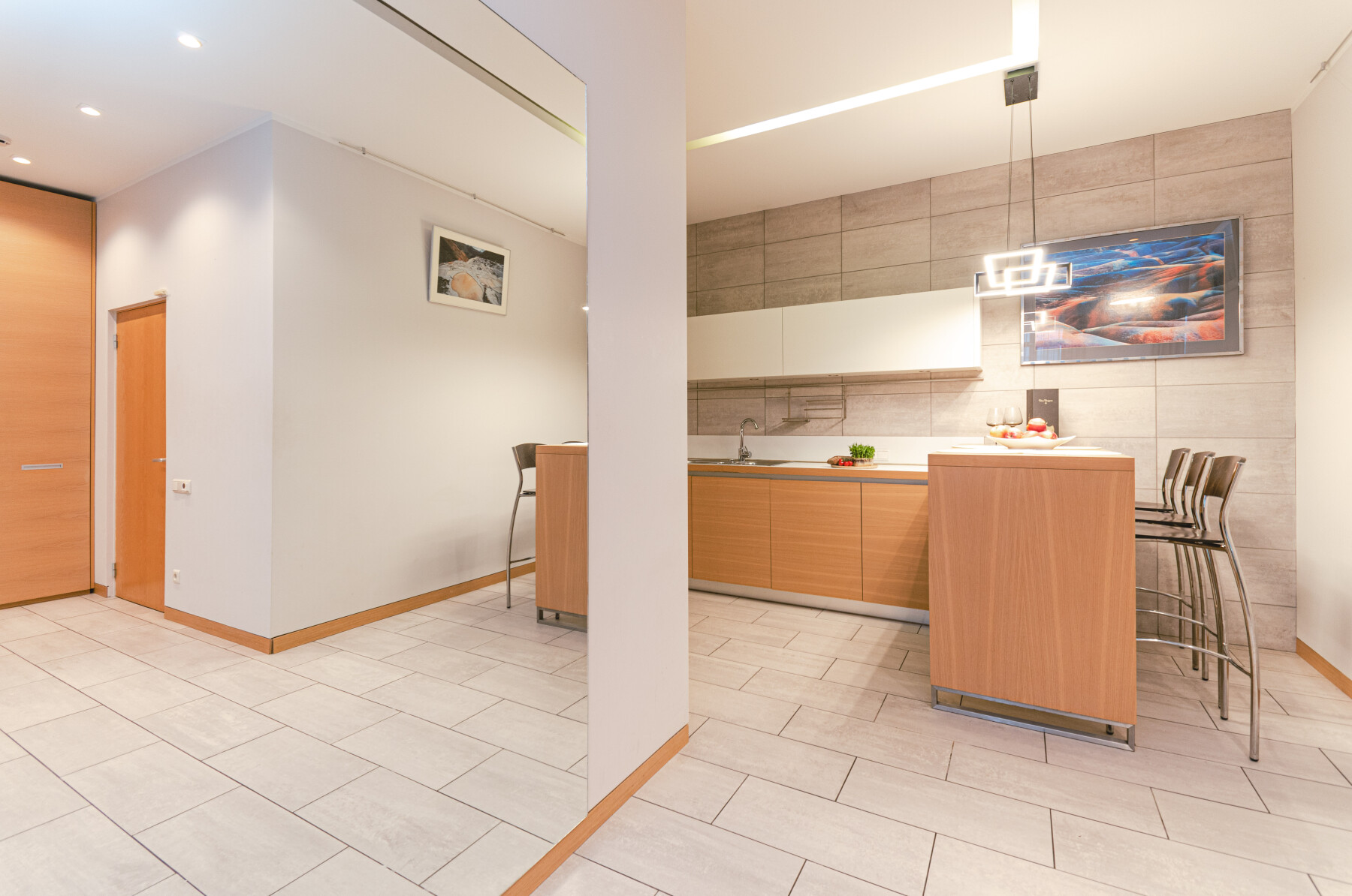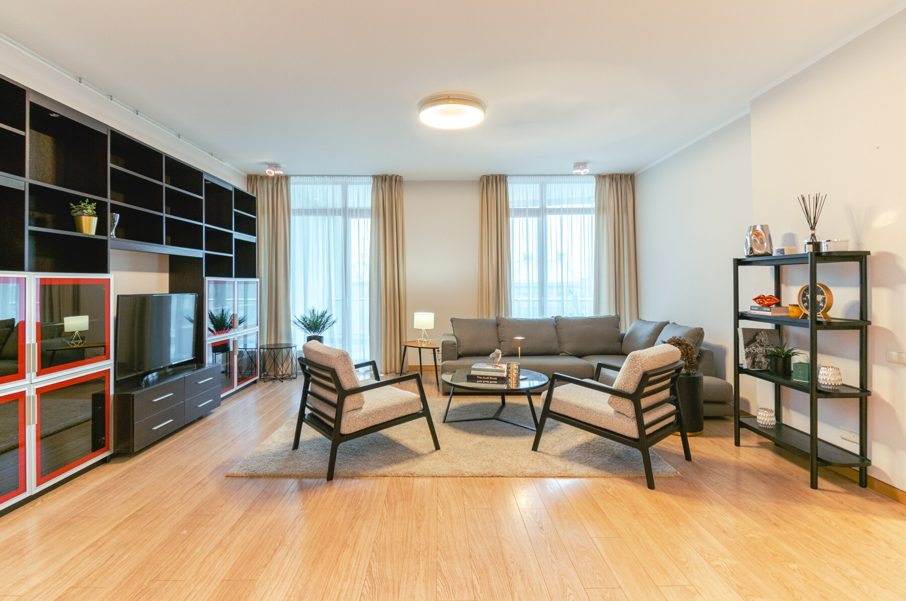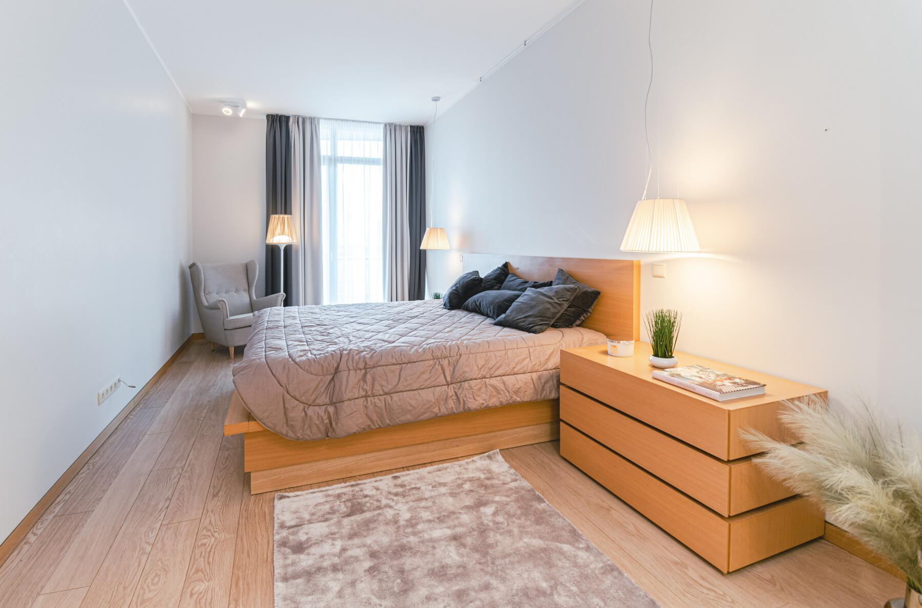 В долгосрочную аренду предлагается благоустроенная, светлая, просторная, полностью оборудованная трехкомнатная квартира с панорамными окнами и выходом на террасу в центре Риги, в проекте Tomsona terases.