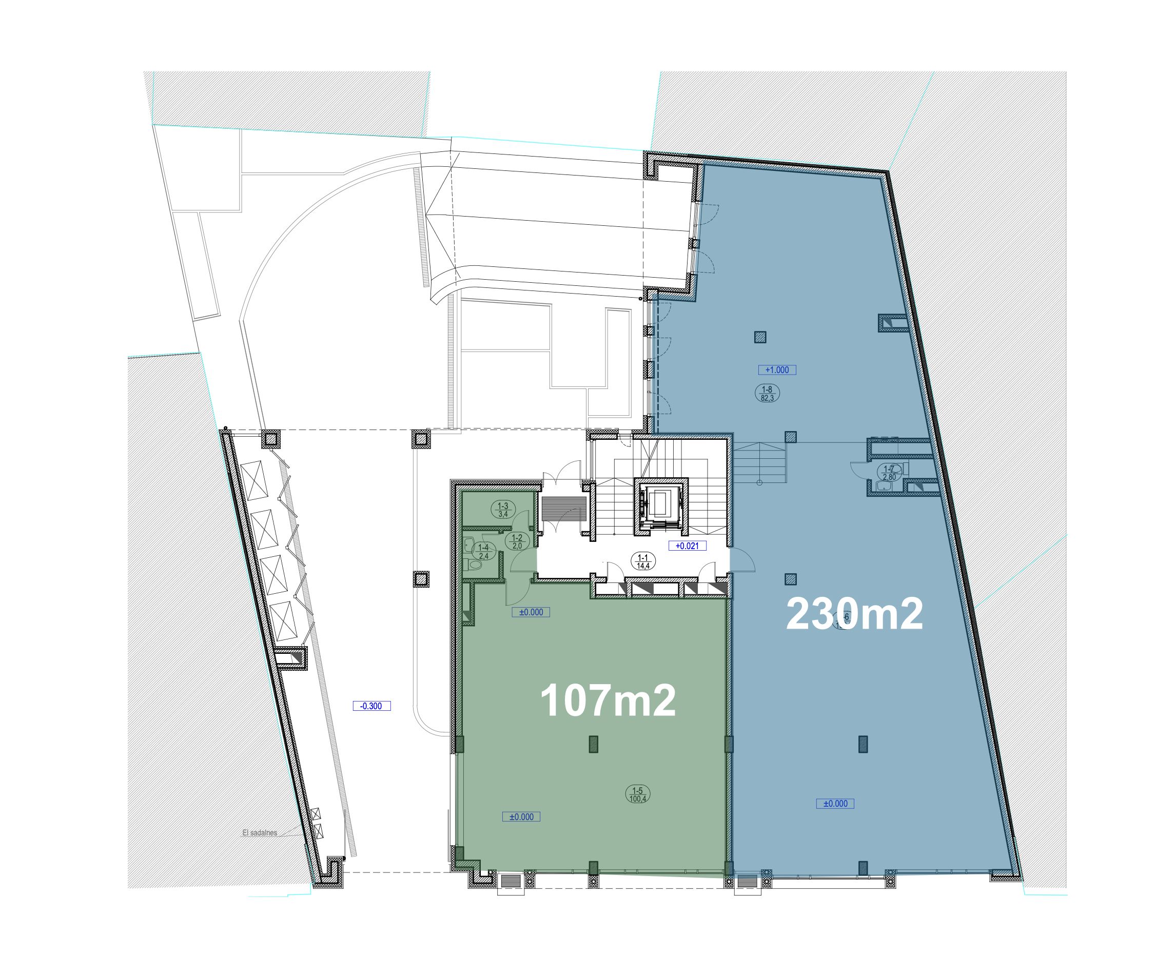Помещения доступны как для покупки, так и для аренды. Доступные площади составляют 107, 230 и 336,9 квадратных метров.