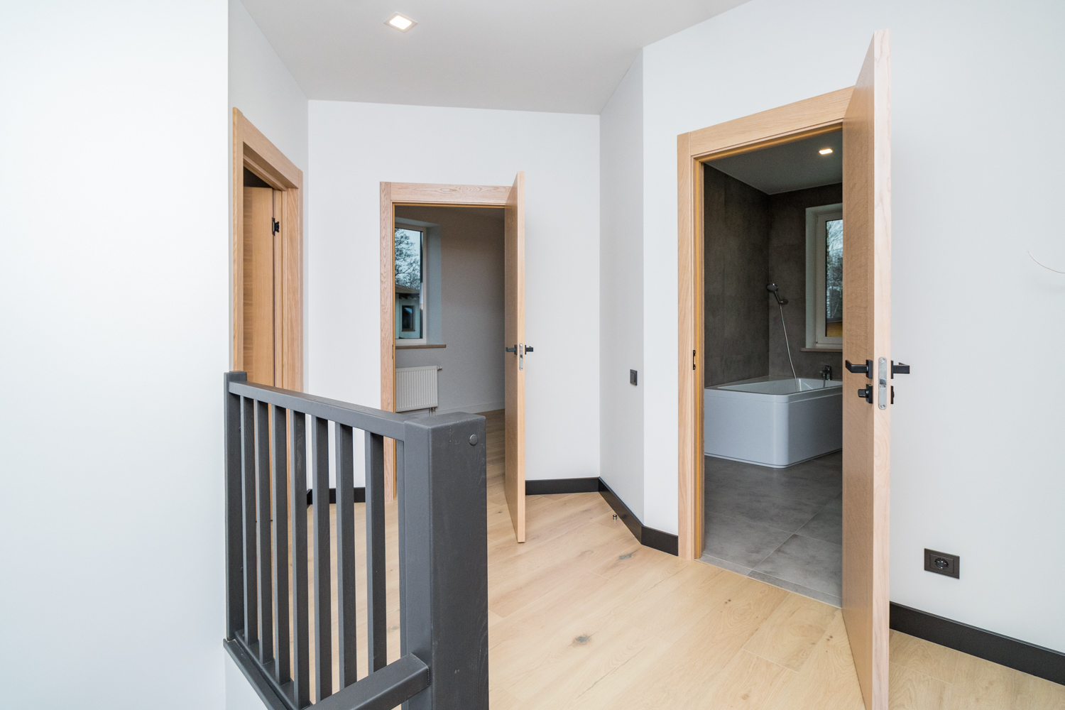 Otrajā stāvā saimnieku guļamistaba ar atdalītu skapja zonu un savu vannas istabu, divas bērnu guļamistabas un vannas istaba ar vannu un dušu.