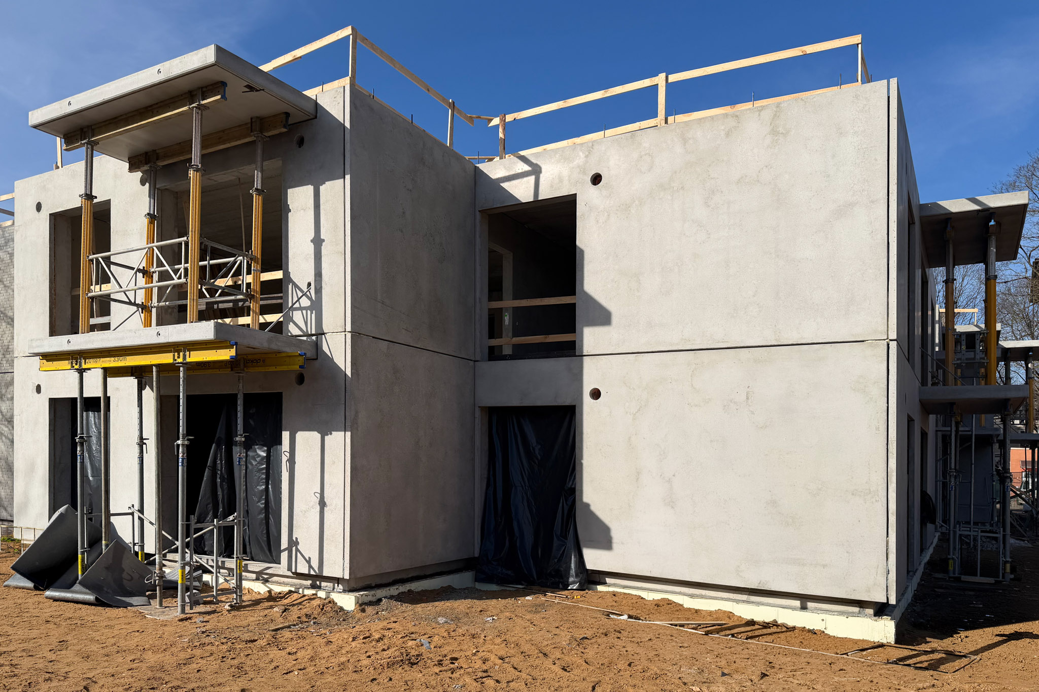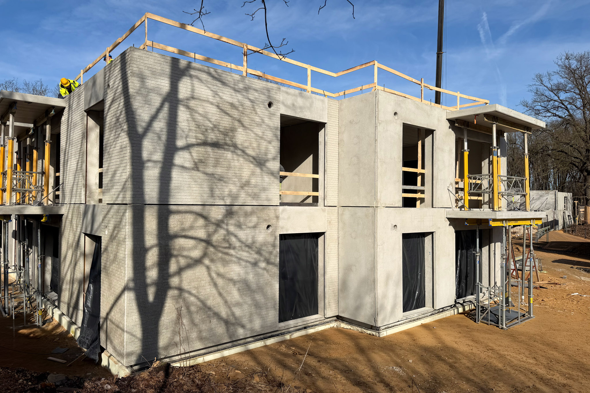 Šobrīd vienai no divām ēkām pilnībā  pabeigta pirmo divu stāvu nesošo konstrukciju montāža un izbūvētas ārējās sienas, kas jau ļauj skaidri apjaust ēkas arhitektonisko apjomu, telpisko risinājumu dabiskajā vidē un novērtēt arī iekštelpu gaismas plūdumu un plānojuma loģiku.