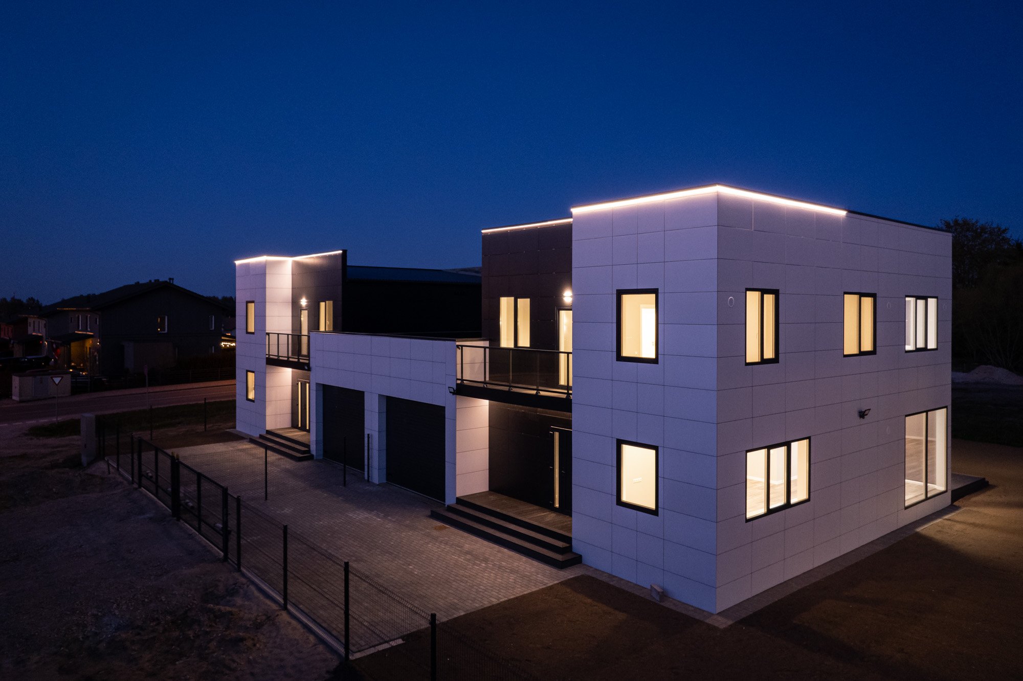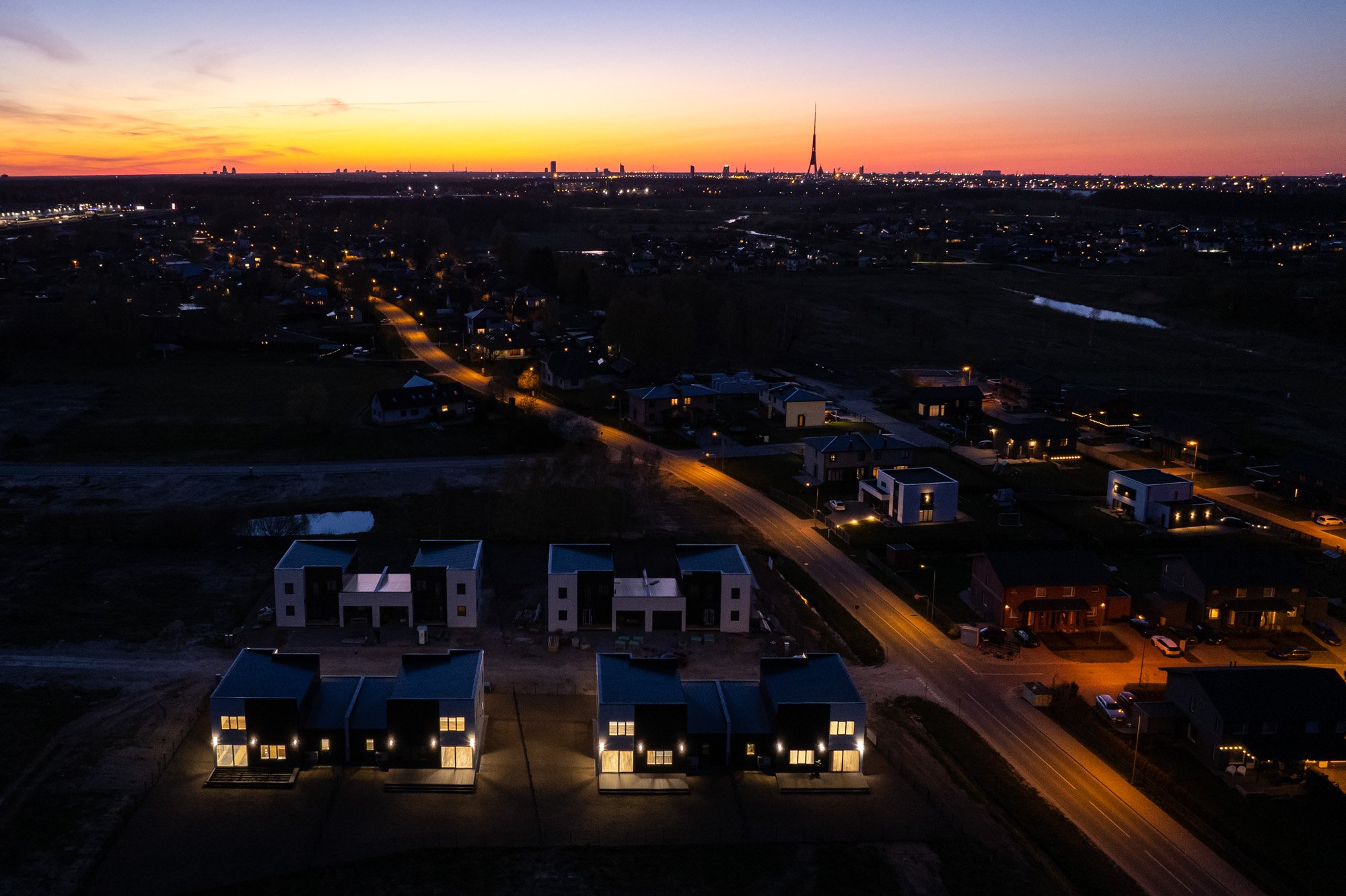 Visām Rāmavas Rezidences ciemata villām ir izbūvēts elegants nakts apgaismojums akcentējot jumta kores līniju tādējādi radot ciematam kopēju unikālu raksturu un šarmu tumšajos vakaros.