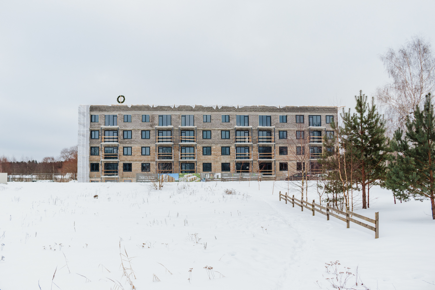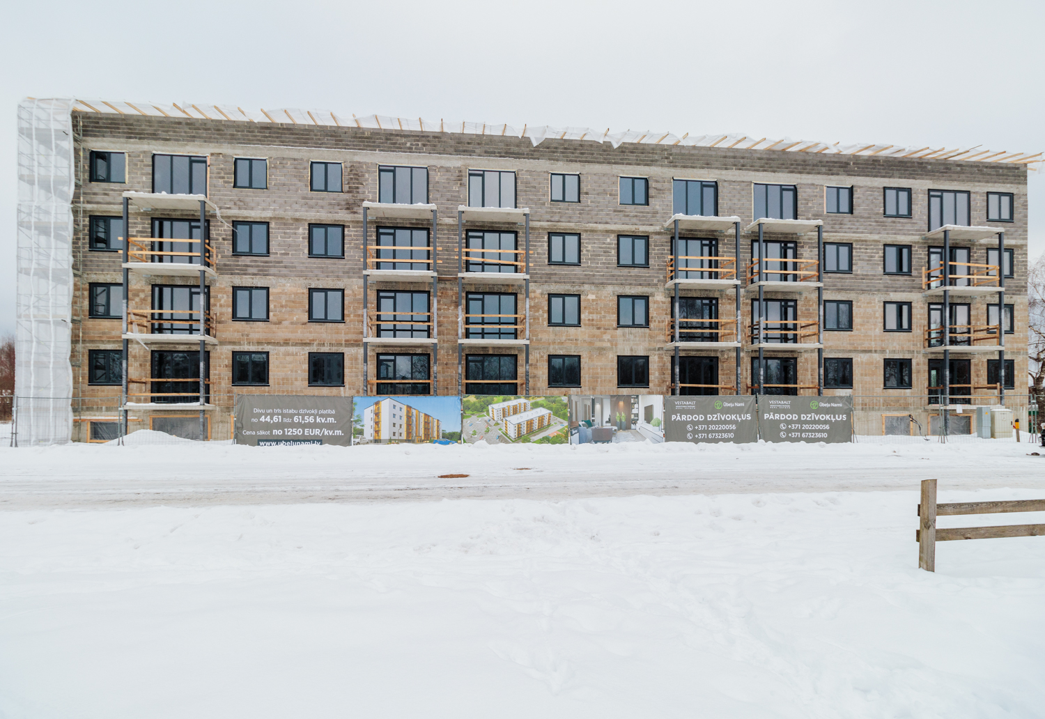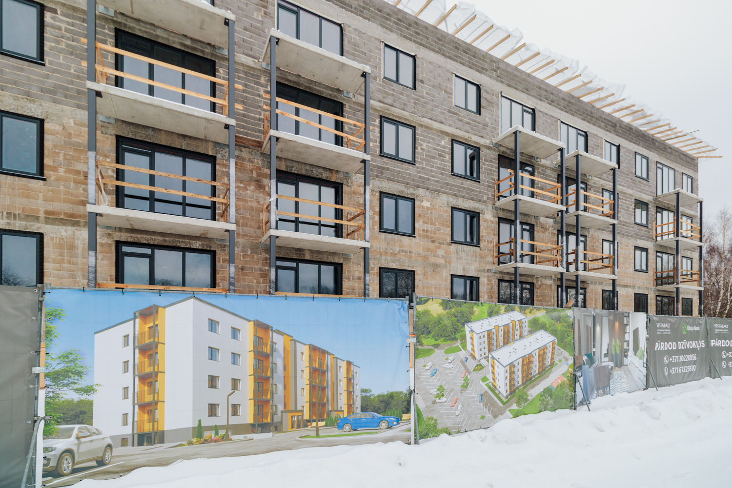 Būvniecība tika uzsākta pagājušā gada rudenī un jau šomēnes tika pabeigta pirmās dzīvojamās ēkas nesošo konstrukciju būvniecības darbi.