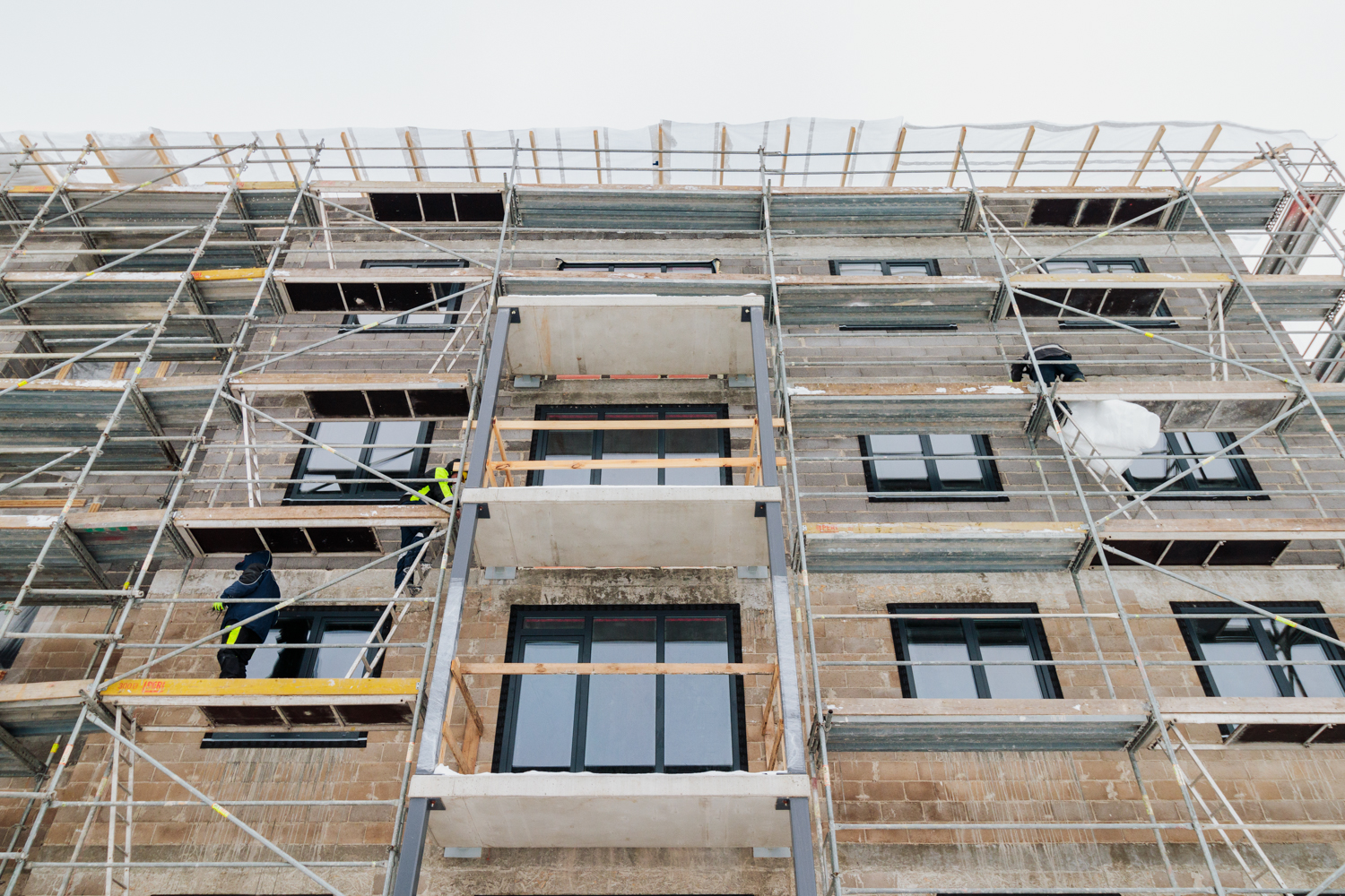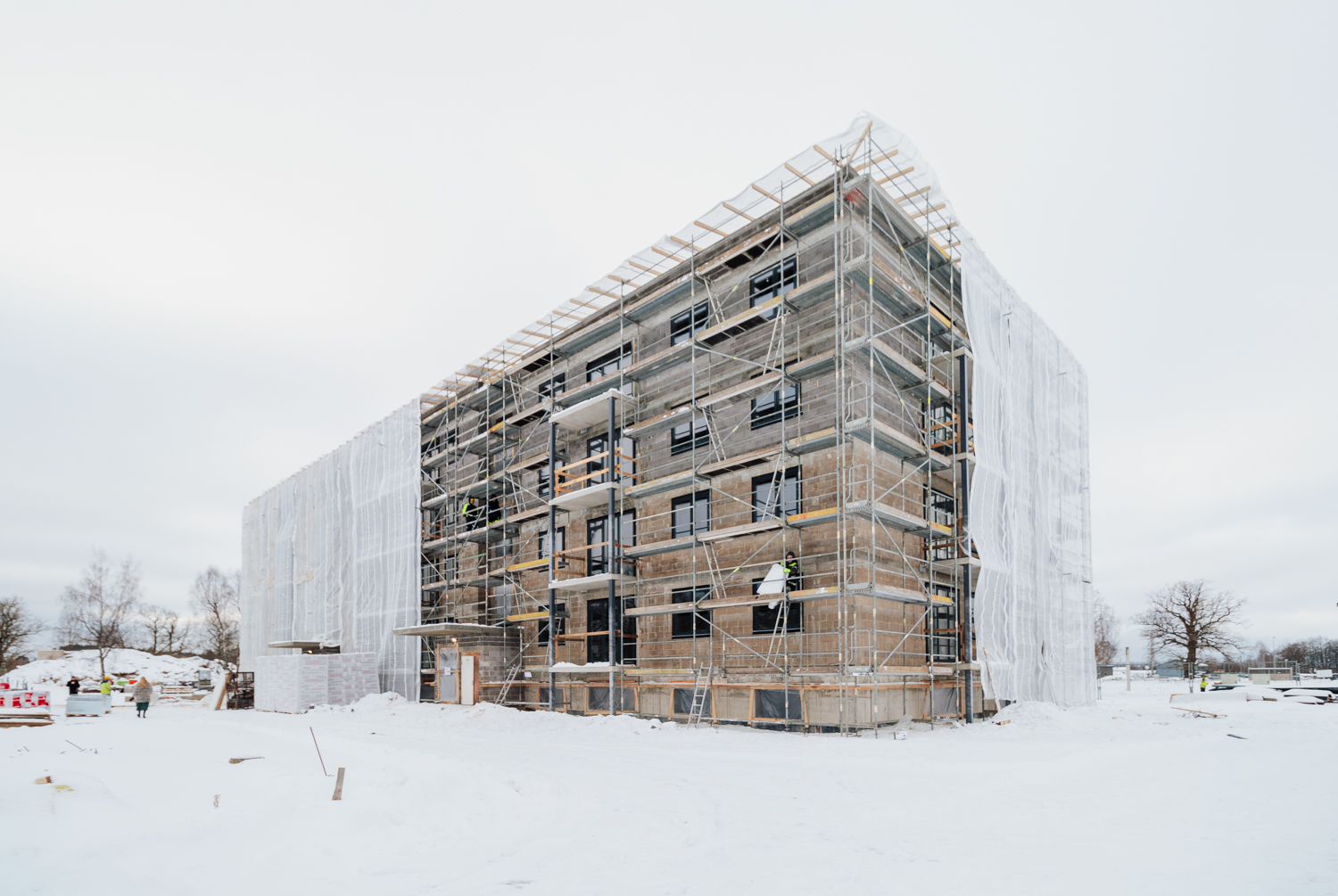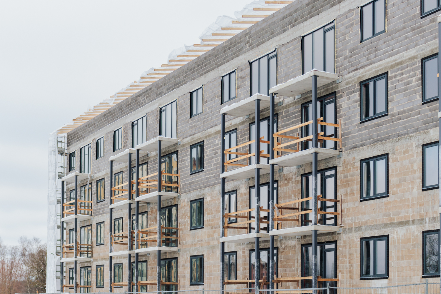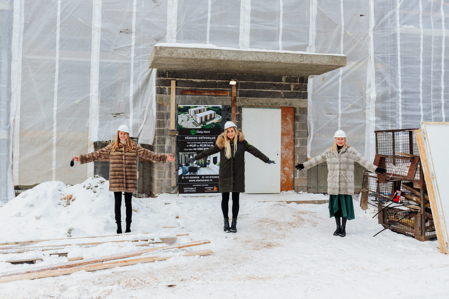 Būvniecība tika uzsākta pagājušā gada rudenī un jau šomēnes tika pabeigta pirmās dzīvojamās ēkas nesošo konstrukciju būvniecības darbi.