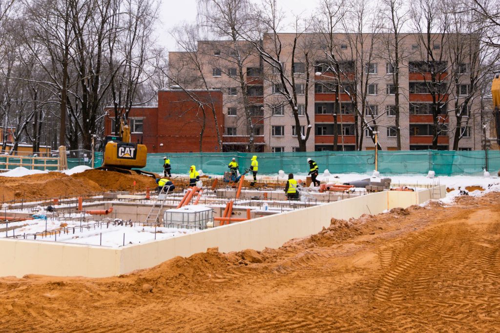 Šobrīd pabeigti būtiski sākuma posma darbi – pilnībā iebetonēti B ēkas pamati, savukārt, A ēkai pamatu betonēšana tuvojas noslēgumam. Paralēli notiek zemgrīdas inženierkomunikāciju izbūve, kā arī tiek ražoti saliekamie dzelzsbetona paneļi nākamajām būvniecības fāzēm. Process norit plānveidīgi un bez kavējumiem.