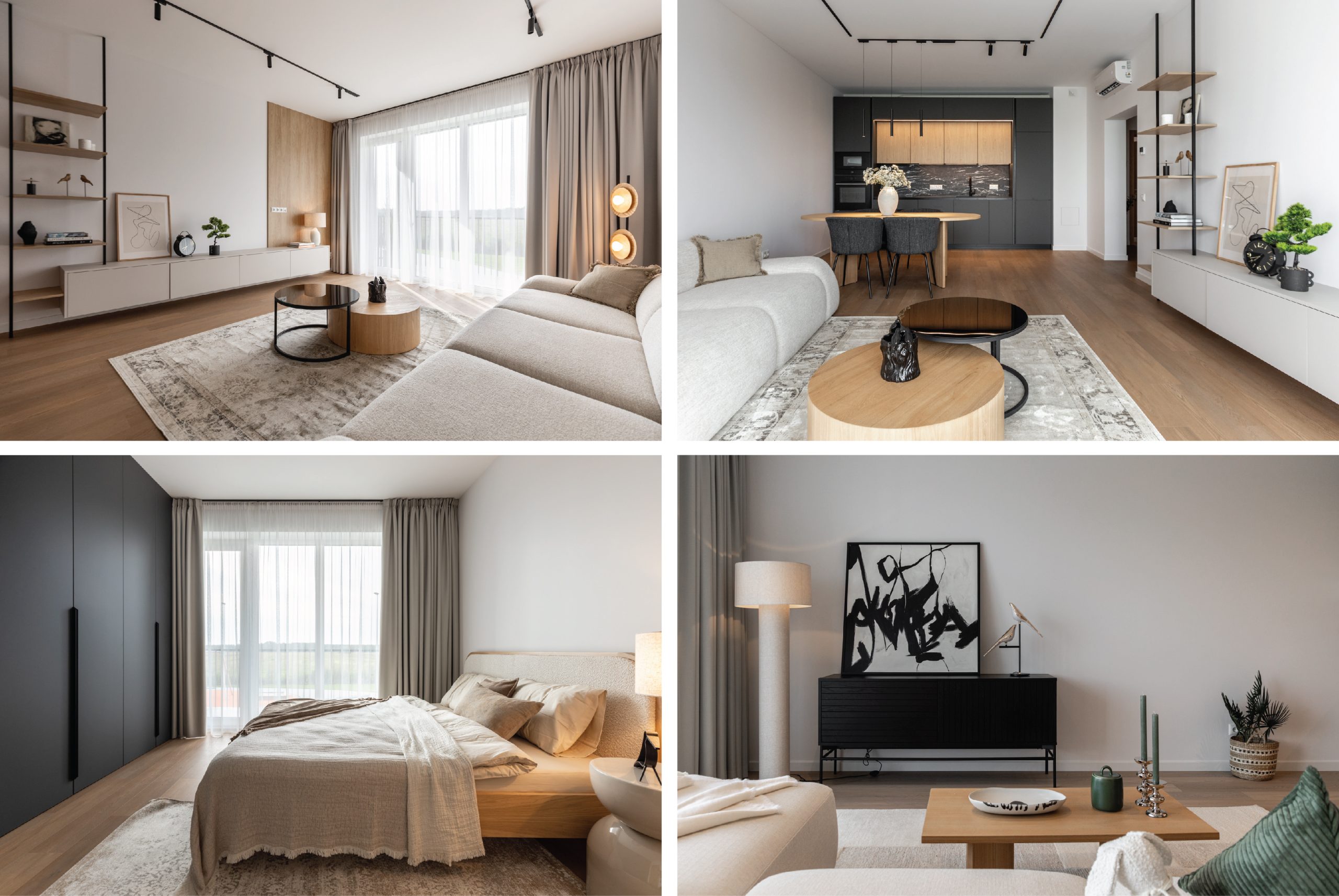 Dzīvokļi, kas piedāvāti platībās no 69 līdz 98 kvadrātmetriem, ir ar pilnu iekšējo apdari un izceļas ar plašiem, pārdomātiem plānojumiem, augstvērtīgiem materiāliem un rūpīgi labiekārtotu teritoriju. Ēkas arhitektūrā ievēroti mazstāvu apbūves principi – katrā kāpņu telpā atrodas tikai divi dzīvokļi, kas iedzīvotājiem nodrošina lielāku privātuma un mājīguma sajūtu.