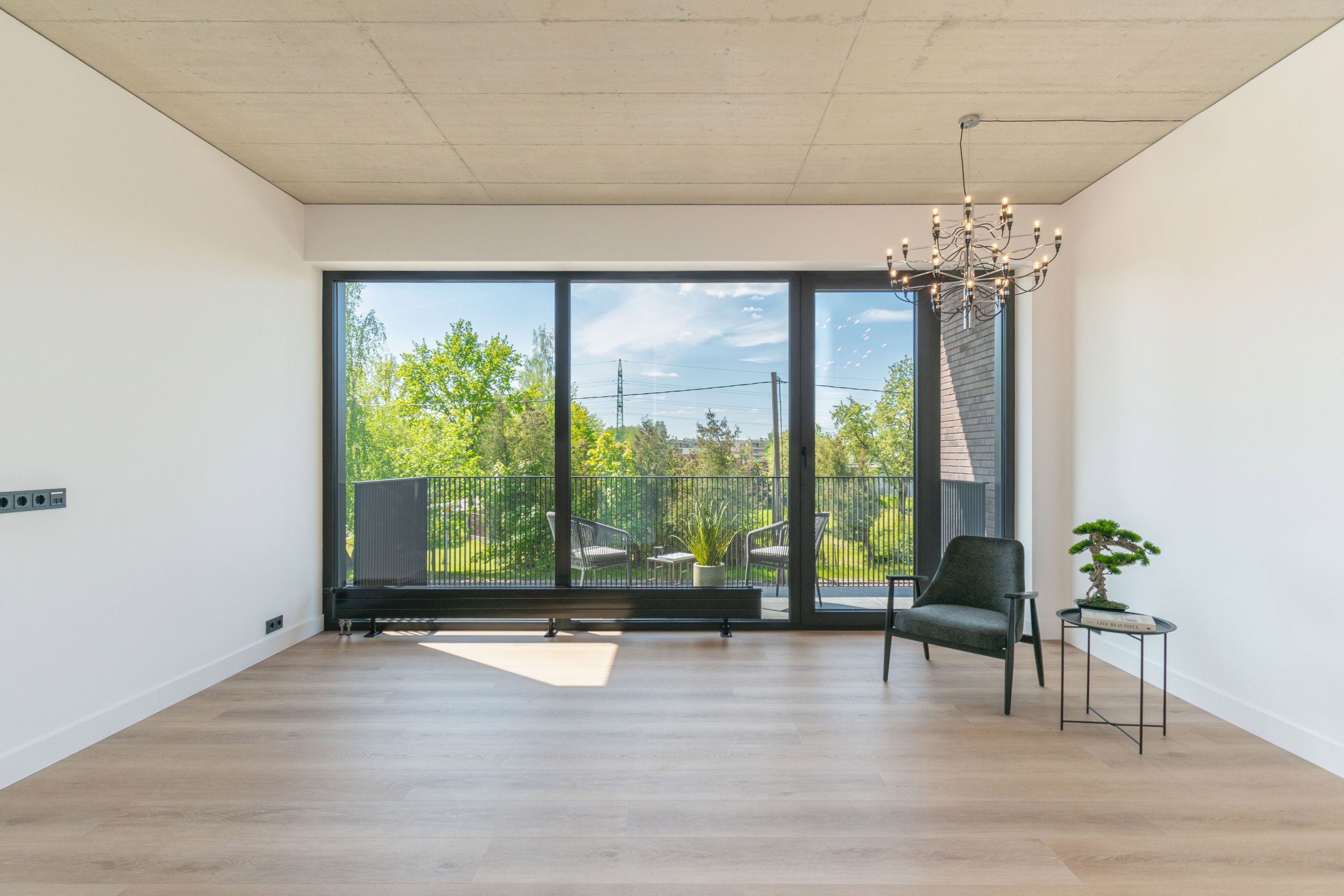 Projektā kopā ir 9 dzīvokļi platībās no 88 līdz 114 m2. Visiem dzīvokļiem ir plašas terases un franču balkoni. Pirmā stāva dzīvoklim ir atsevišķa norobežota zaļā zona, kas rada īpašu mājas sajūtu. Katram dzīvoklim ēkas pagalmā ir pieejamas 2 autostāvvietas.